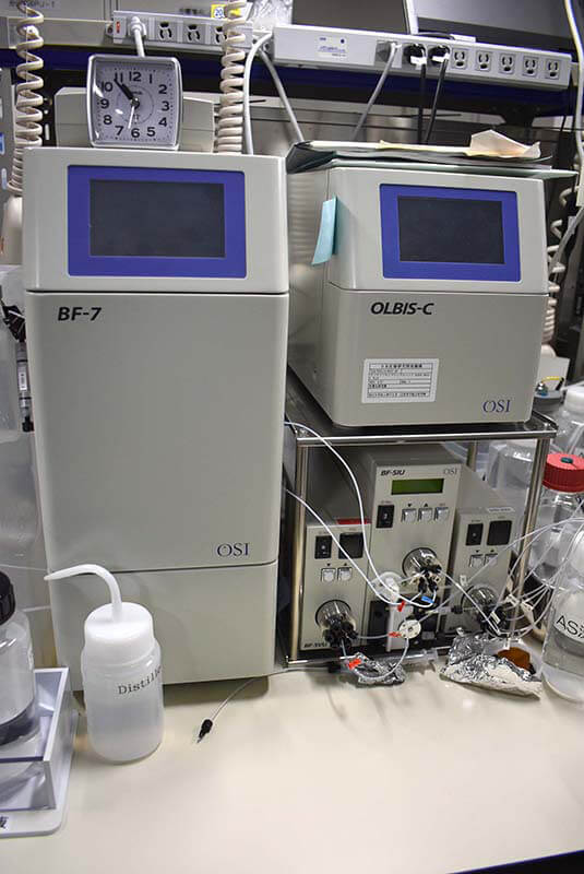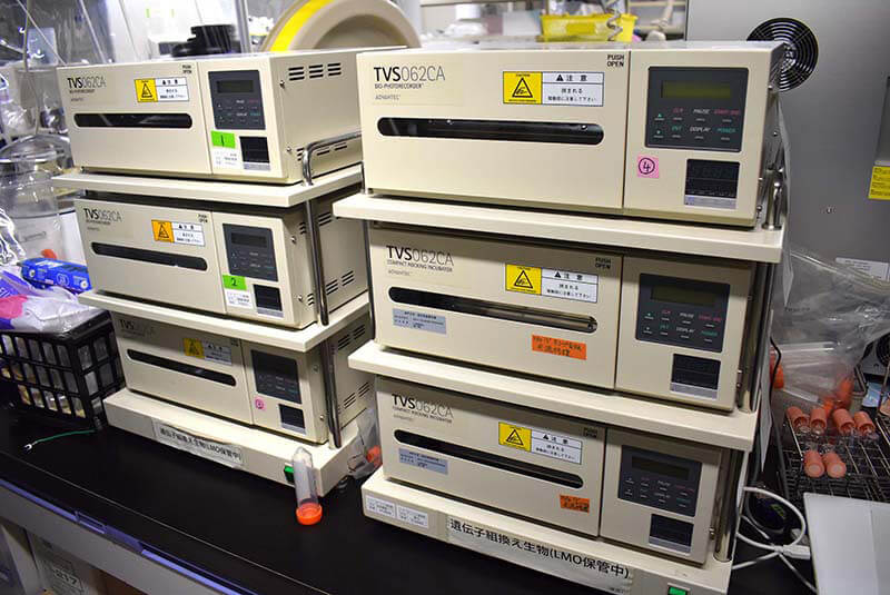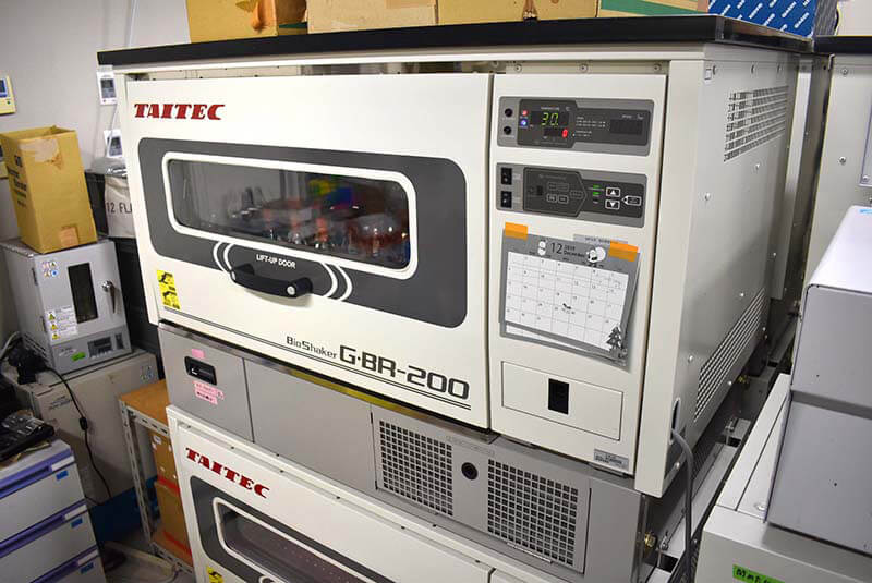 ※写真をクリックすると拡大します 遺伝子解析 機器名 メーカー 商品名・型式 設置場所 設置年 写真 ジェネティックアナライザ 米国ライフテクノロジーズ社 メチライザシステム AB3500R 自然科学総合研究棟4号館 生物化学工学実験室 2018 定量PCRシステム 米国アジレント・テクノロジー社 Mx3000P 自然科学総合研究棟4号館 生物化学工学実験室 2010 リアルタイムPCRシステム 米国サーモフィッシャーサイエンティフィック社 QuantStudio3 QS3-96S 自然科学総合研究棟4号館 生物化学工学実験室 2016 T100サーマルサイクラー 米国Bio-Rad 社 186-1096J1 自然科学総合研究棟4号館 ゲノム動態実験室 2011 ケミドック 米国Bio-Rad 社 ChemiDoc XRS Plus 自然科学総合研究棟4号館 ゲノム動態実験室 2013 リアルタイムPCR装置 タカラバイオ株式会社 Thermal Cycler Dice Real Time System Lite TP700 農学研究科F612 2013 リアルタイムPCRシステム 米国Applied Biosystems社 Applied Biosystems 7500/7500Fast Real-Time PCR system 自然科学総合研究棟2号館 食品成分実験室 2010 リアルタイムPCRシステム タカラバイオ株式会社 TP900 自然科学総合研究棟4号館 中央実験室 2015 次世代シーケンサー 米国イルミナ社 Miniseq 統合研究拠点アネックス棟 多目的実験室 2017 DNA断片化装置 米国コバリス社 Covaris DNA Shearing System / M220 統合研究拠点アネックス棟 多目的実験室 2014 顕微鏡 機器名 メーカー 商品名・型式 設置場所 設置年 写真 原子間力顕微鏡 セイコーインスツルメント株式会社 SPA400 自然科学総合研究棟4号館 機器分析室 2008 HSオールインワン蛍光顕微鏡 株式会社キーエンス BZ-9000 自然科学総合研究棟2号館 P1遺伝子実験室 2007 HSオールインワン蛍光顕微鏡 株式会社キーエンス BZ-9000 農学研究科F603 2010 倒立顕微鏡 株式会社オリンパス FSX100 自然科学総合研究棟4号館中央実験室 2013 周波数変調原子間力顕微鏡 株式会社島津製作所 SPM-8100FM相当機 理学研究科A棟129号室 2013 共焦点レーザースキャン顕微鏡 独国ツァイス社 LSM800(2xMA-PMT) 統合研究拠点アネックス棟細胞実験室 2018 タンパク質解析 機器名 メーカー 商品名・型式 設置場所 設置年 写真 タンパク質精製自動化システム テカンジャパン株式会社 Fluent 780K 産官学連携本部実験室 2018 クロマトグラフ分析 機器名 メーカー 商品名・型式 設置場所 設置年 写真 高速液体クロマトグラフ質量分析計 株式会社島津製作所 Prominence 自然科学総合研究棟4号館生物化学工学実験室 2013 ガスクロマトグラフ質量分析計 株式会社島津製作所 GCMS-QP2020 自然科学総合研究棟4号館生物化学工学実験室 2016 クロマトグラフィーシステム 英国GEヘルスケア社 AKTApurifier UPC 10 自然科学総合研究棟4号館生物化学工学実験室 2018 キャピラリガスクロマトグラフシステム 株式会社島津製作所 GC-2014 自然科学総合研究棟2号館プロジェクト実験室 2005 高速液体クロマトグラフ(HPLC) 株式会社島津製作所 CBM-20A,LC-20AB,SIL-20ACHT,CTO-20AC, SPD-20A,RID-10A,DGU-20A3R 自然科学総合研究棟4号館生物化学工学実験室 2013 高速液体クロマトグラフ(HPLC) 株式会社島津製作所 Prominence UFLC 農学研究科F612 2010 蛍光解析 機器名 メーカー 商品名・型式 設置場所 設置年 写真 ルミノイメージアナライザー GEヘルスケア・ジャパン株式会社 ImageQuant LAS 4010 自然科学総合研究棟4号館生物化学工学実験室 2009 クロロフィル蛍光測定装置 独国HEINZ WALZ社 JUNIOR-PAM 自然科学総合研究棟4号館全学スペース 2016 イメージングPAM 独国HEINZ WALZ社 PSI800MF 自然科学総合研究棟4号館ゲノム動態実験室 2008 クロロフィル蛍光測定装置 独国HEINZ WALZ社 JUNIOR-PAM 自然科学総合研究棟4号館ゲノム動態実験室 2013 葉緑素計 コニカミノルタ株式会社 SPAD-502Plus 自然科学総合研究棟4号館ゲノム動態実験室 2014 分光蛍光光度計 株式会社日立ハイテクサイエンス F-2700 自然科学総合研究棟4号館中央実験室 2015 化学発光撮影装置 アトー株式会社 WSE-6100 LuminoGraphⅠ 自然科学総合研究棟4号館中央実験室 2017 絶対蛍光量子収率測定装置 日本分光株式会社 FP-6600/ILFC-543L 自然科学総合研究棟4号館実験室 2013 アミノ酸解析 機器名 メーカー 商品名・型式 設置場所 設置年 写真 アミノ酸分析システム本体 株式会社島津製作所 Prominence 自然科学総合研究棟4号館生物化学工学実験室 2009 質量分析 機器名 メーカー 商品名・型式 設置場所 設置年 写真 高速液体クロマトグラフトリプル四重極型質量分析計システム 米国アジレント・テクノロジー社 G6460AA 自然科学総合研究棟4号館生物化学工学実験室 2011 飛行時間型質量分析計 米国アジレント・テクノロジー社 TOF-MS G6230BA 他 自然科学総合研究棟4号館分析実験室 2018 高速液体クロマトグラフ質量分析計 株式会社島津製作所 LCMS-2020 産官学連携本部実験室 2012 LC-MS/MS 米国アジレント・テクノロジー社 6460 triple Quad LC/MS 自然科学総合研究棟4号館生物化学工学実験室 2011 LC-MS 株式会社島津製作所 LCMS-8040 自然科学総合研究棟4号館実験準備室 2013 ヘッドスペースガスクロマトグラフ質量分析装置 株式会社島津製作所 HS-20 Trap / GCMS-QP2010 Ultra 産官学連携本部実験室 2016 インキ