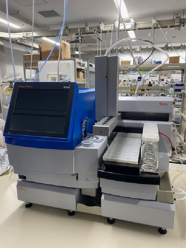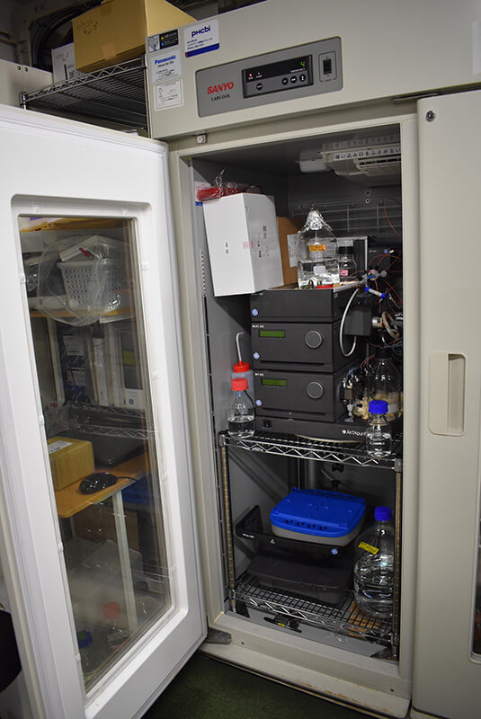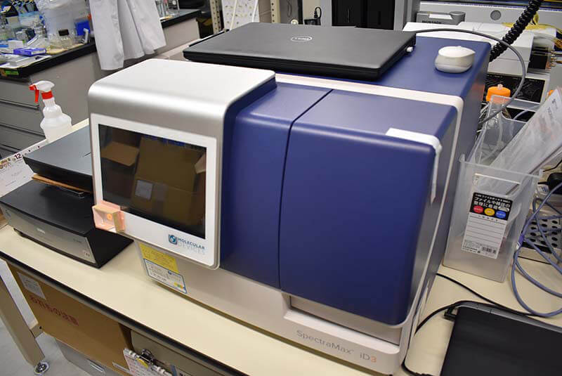 設備・機器 HOME 設備・機器 JUMP MENU 遺伝子解析 顕微鏡 タンパク質解析 クロマトグラフ分析 蛍光解析 アミノ酸解析 質量分析 インキュベーター バイオセンサ 反応器 化学合成 変異導入 凍結乾燥 破砕 電気化学 細胞分離 電気泳動 炭素分析 分注 分光 遠心分離 遺伝子導入 安全キャビネット ※写真をクリックすると拡大します 遺伝子解析 機器名 メーカー 商品名・型式 設置場所 設置年 写真 ジェネティックアナライザ 米国ライフテクノロジーズ社 メチライザシステム AB3500R 自然科学総合研究棟4号館 生物化学工学実験室 2018 定量PCRシステム 米国アジレント・テクノロジー社 Mx3000P 自然科学総合研究棟4号館 生物化学工学実験室 2010 リアルタイムPCRシステム 米国サーモフィッシャーサイエンティフィック社 QuantStudio3 QS3-96S 自然科学総合研究棟4号館 生物化学工学実験室 2016 T100サーマルサイクラー 米国Bio-Rad 社 186-1096J1 自然科学総合研究棟4号館 ゲノム動態実験室 2011 ケミドック 米国Bio-Rad 社 ChemiDoc XRS Plus 自然科学総合研究棟4号館 ゲノム動態実験室 2013 リアルタイムPCR装置 タカラバイオ株式会社 Thermal Cycler Dice Real Time System Lite TP700 農学研究科F612 2013 リアルタイムPCRシステム 米国Applied Biosystems社 Applied Biosystems 7500/7500Fast Real-Time PCR system 自然科学総合研究棟2号館 食品成分実験室 2010 リアルタイムPCRシステム タカラバイオ株式会社 TP900 自然科学総合研究棟4号館 中央実験室 2015 次世代シーケンサー 米国イルミナ社 Miniseq 統合研究拠点アネックス棟 多目的実験室 2017 DNA断片化装置 米国コバリス社 Covaris DNA Shearing System / M220 統合研究拠点アネックス棟 多目的実験室 2014 顕微鏡 機器名 メーカー 商品名・型式 設置場所 設置年 写真 原子間力顕微鏡 セイコーインスツルメント株式会社 SPA400 自然科学総合研究棟4号館 機器分析室 2008 HSオールインワン蛍光顕微鏡 株式会社キーエンス BZ-9000 自然科学総合研究棟2号館 P1遺伝子実験室 2007 HSオールインワン蛍光顕微鏡 株式会社キーエンス BZ-9000 農学研究科F603 2010 倒立顕微鏡 株式会社オリンパス FSX100 自然科学総合研究棟4号館中央実験室 2013 周波数変調原子間力顕微鏡 株式会社島津製作所 SPM-8100FM相当機 理学研究科A棟129号室 2013 共焦点レーザースキャン顕微鏡 独国ツァイス社 LSM800(2xMA-PMT) 統合研究拠点アネックス棟細胞実験室 2018 タンパク質解析 機器名 メーカー 商品名・型式 設置場所 設置年 写真 タンパク質精製自動化システム テカンジャパン株式会社 Fluent 780K 産官学連携本部実験室 2018 クロマトグラフ分析 機器名 メーカー 商品名・型式 設置場所 設置年 写真 高速液体クロマトグラフ質量分析計 株式会社島津製作所 Prominence 自然科学総合研究棟4号館生物化学工学実験室 2013 ガスクロマトグラフ質量分析計 株式会社島津製作所 GCMS-QP2020 自然科学総合研究棟4号館生物化学工学実験室 2016 クロマトグラフィーシステム 英国GEヘルスケア社 AKTApurifier UPC 10 自然科学総合研究棟4号館生物化学工学実験室 2018 キャピラリガスクロマトグラフシステム 株式会社島津製作所 GC-2014 自然科学総合研究棟2号館プロジェクト実験室 2005 高速液体クロマトグラフ(HPLC) 株式会社島津製作所 CBM-20A,LC-20AB,SIL-20ACHT,CTO-20AC, SPD-20A,RID-10A,DGU-20A3R 自然科学総合研究棟4号館生物化学工学実験室 2013 高速液体クロマトグラフ(HPLC) 株式会社島津製作所 Prominence UFLC 農学研究科F612 2010 蛍光解析 機器名 メーカー 商品名・型式 設置場所 設置年 写真 ルミノイメージアナライザー GEヘルスケア・ジャパン株式会社 ImageQuant LAS 4010 自然科学総合研究棟4号館生物化学工学実験室 2009 クロロフィル蛍光測定装置 独国HEINZ WALZ社 JUNIOR-PAM 自然科学総合研究棟4号館全学スペース 2016 イメージングPAM 独国HEINZ WALZ社 PSI800MF 自然科学総合研究棟4号館ゲノム動態実験室 2008 クロロフィル蛍光測定装置 独国HEINZ WALZ社 JUNIOR-PAM 自然科学総合研究棟4号館ゲノム動態実験室 2013 葉緑素計 コニカミノルタ株式会社 SPAD-502Plus 自然科学総合研究棟4号館ゲノム動態実験室 2014 分光蛍光光度計 株式会社日立ハイテクサイエンス F-2700 自然科学総合研究棟4号館中央実験室 2015 化学発光撮影装置 アトー株式会社 WSE-6100 LuminoGraphⅠ 自然科学総合研究棟4号館中央実験室 2017 絶対蛍光量子収率測定装置 日本分光株式会社 FP-6600/ILFC-543L 自然科学総合研究棟4号館実験室 2013 アミノ酸解析 機器名 メーカー 商品名・型式 設置場所 設置年 写真 アミノ酸分析システム本体 株式会社島津製作所 Prominence 自然科学総合研究棟4号館生物化学工学実験室 2009 質量分析 機器名 メーカー 商品名・型式 設置場所 設置年 写真 高速液体クロマトグラフトリプル四重極型質量分析計システム 米国アジレント・テクノロジー社 G6460AA 自然科学総合研究棟4号館生物化学工学実験室 2011 飛行時間型質量分析計 米国アジレント・テクノロジー社 TOF-MS G6230BA 他 自然科学総合研究棟4号館分析実験室 2018 高速液体クロマトグラフ質量分析計 株式会社島津製作所 LCMS-2020 産官学連携本部実験室 2012 LC-MS/MS 米国アジレン